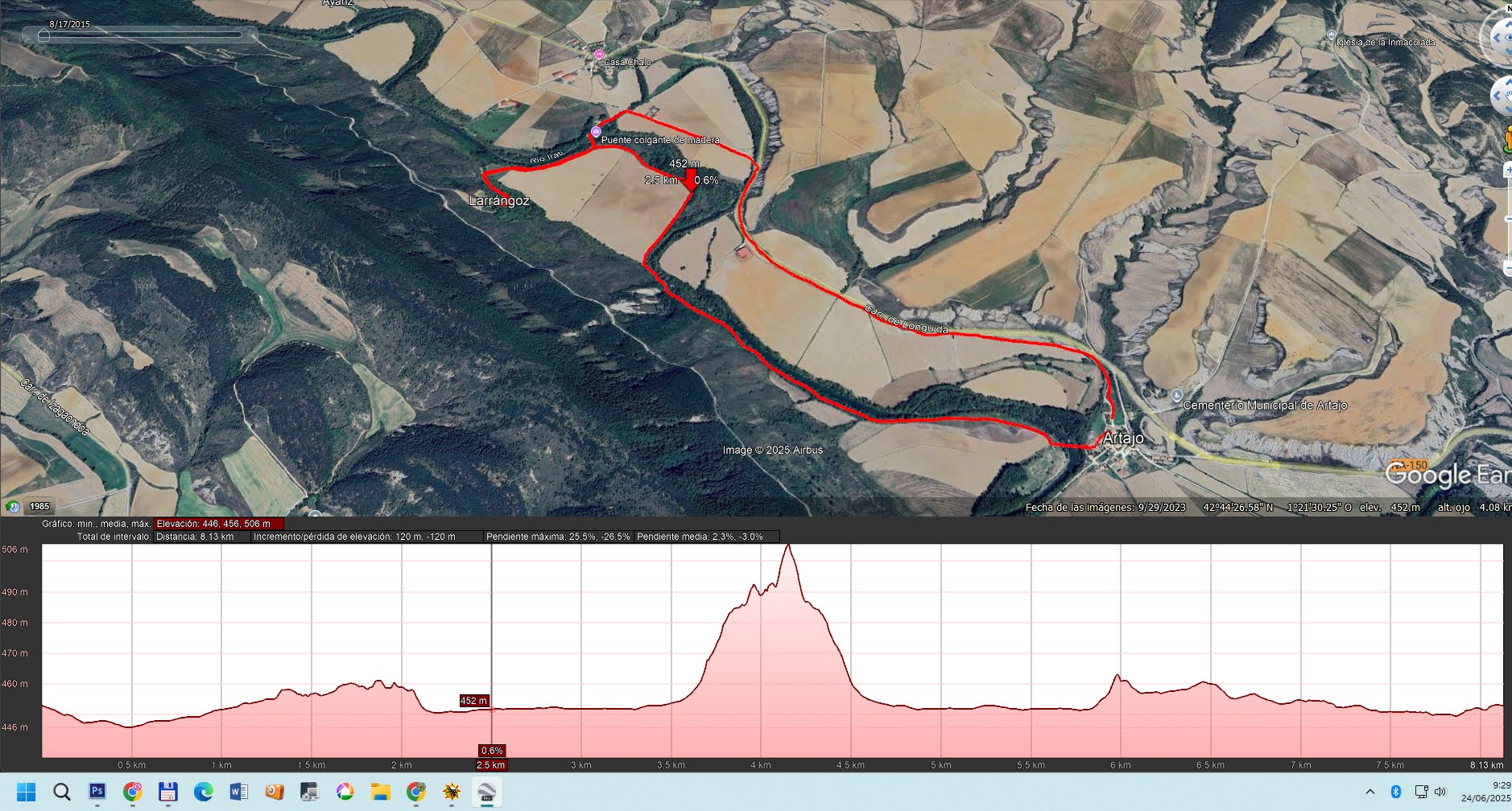 Para el grupo B, desde Artajo, pueden ir al puente colgante (aguas abajo) y hasta el pueblo abandonado de Larrangoz. Y volver, cruzando el puente colgante hacia Murillo, por la vía verde que están haciendo (en paralelo a la carretera), hasta Artajo.